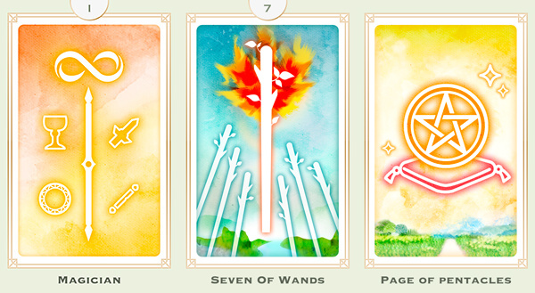 牌組1:魔術師、權杖七、錢幣侍者