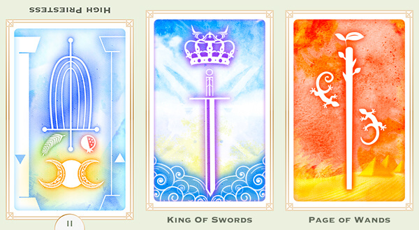 牌組 4:女祭司逆位、寶劍國王、權杖侍者